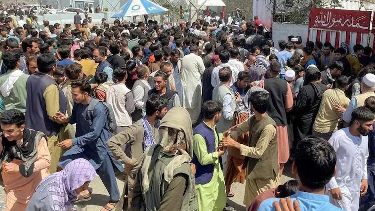 ஆப்கானிஸ்தானில் இருந்து வெளியேறுவதற்காக இந்தியர்கள் உள்பட ஏராளமான வெளிநாட்டினர் காபூல் விமான நிலையம் முன்பு குவிந்துள்ளனர்.